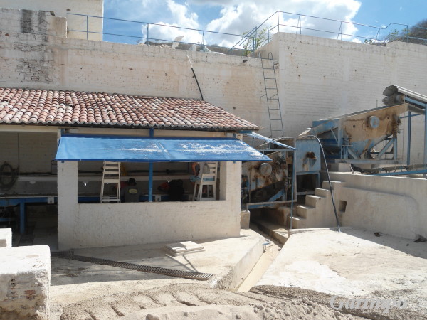 パライバが入っているかもしれない石はベルトコンベアで三次選別施設へと 送られます。機械の騒音がすごいので耳栓必要です。 |